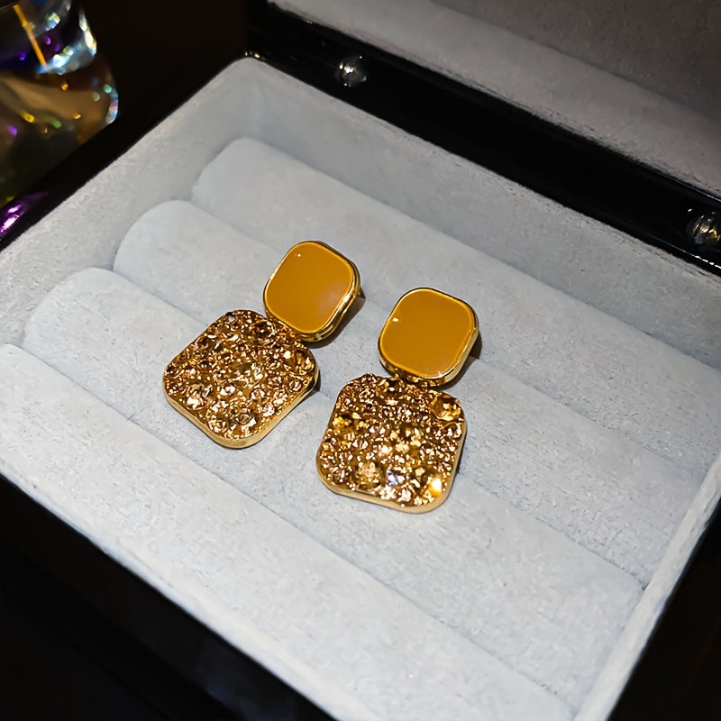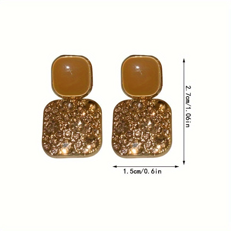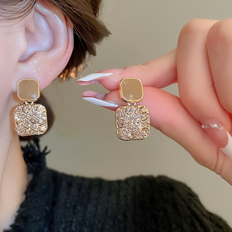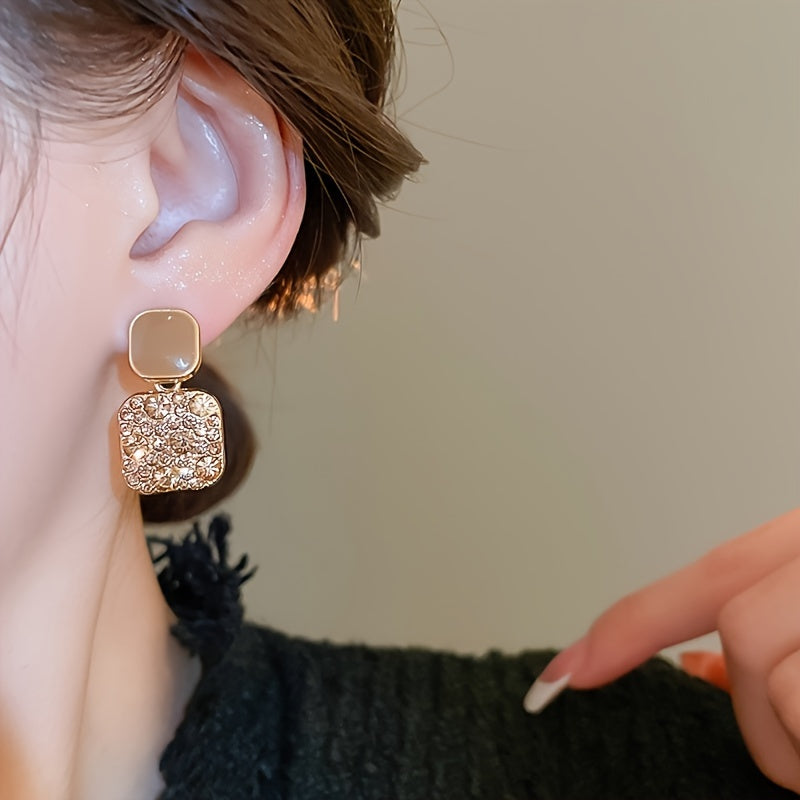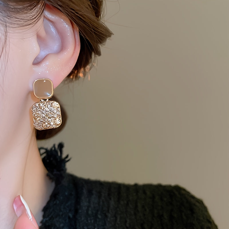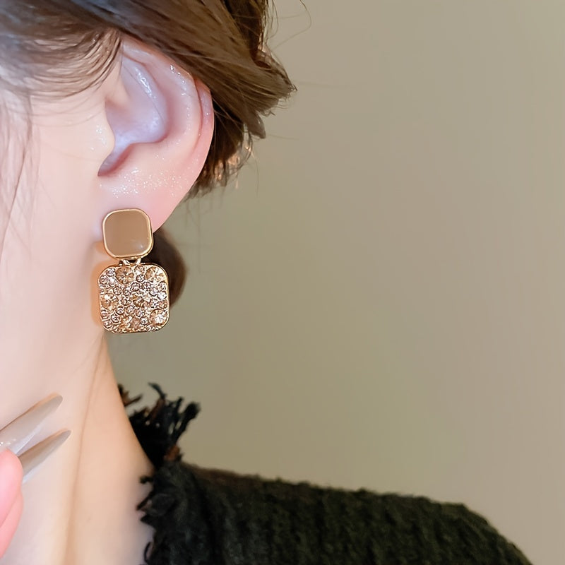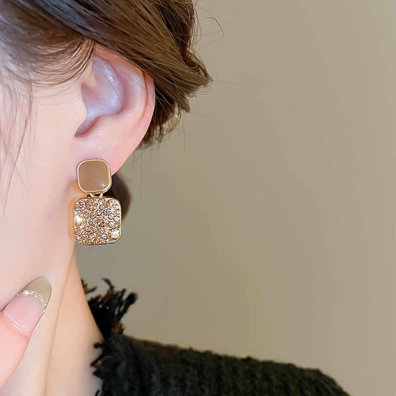 Square Dangle Earrings with Sparkling Rhinestones