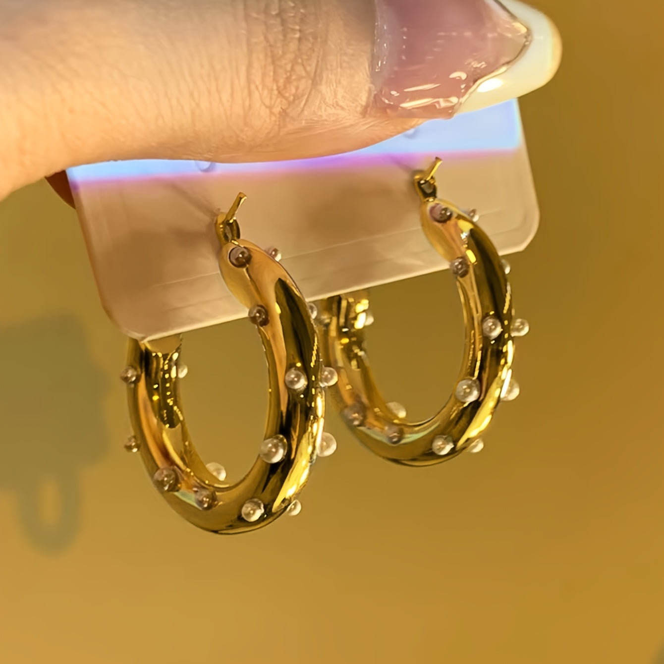 These hoop earrings are lightweight, shiny, and very comfortable to wear all day. They look elegant with both casual and dressy outfits. A wonderful everyday accessory!