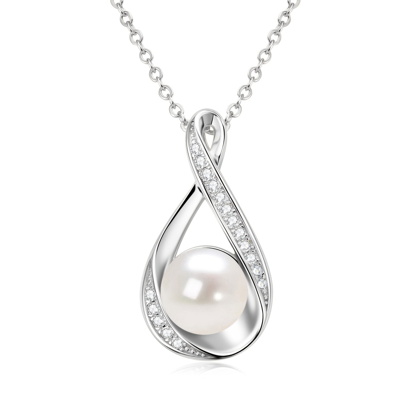 Freshwater White and Moissanite Infinity Pendant Necklace
