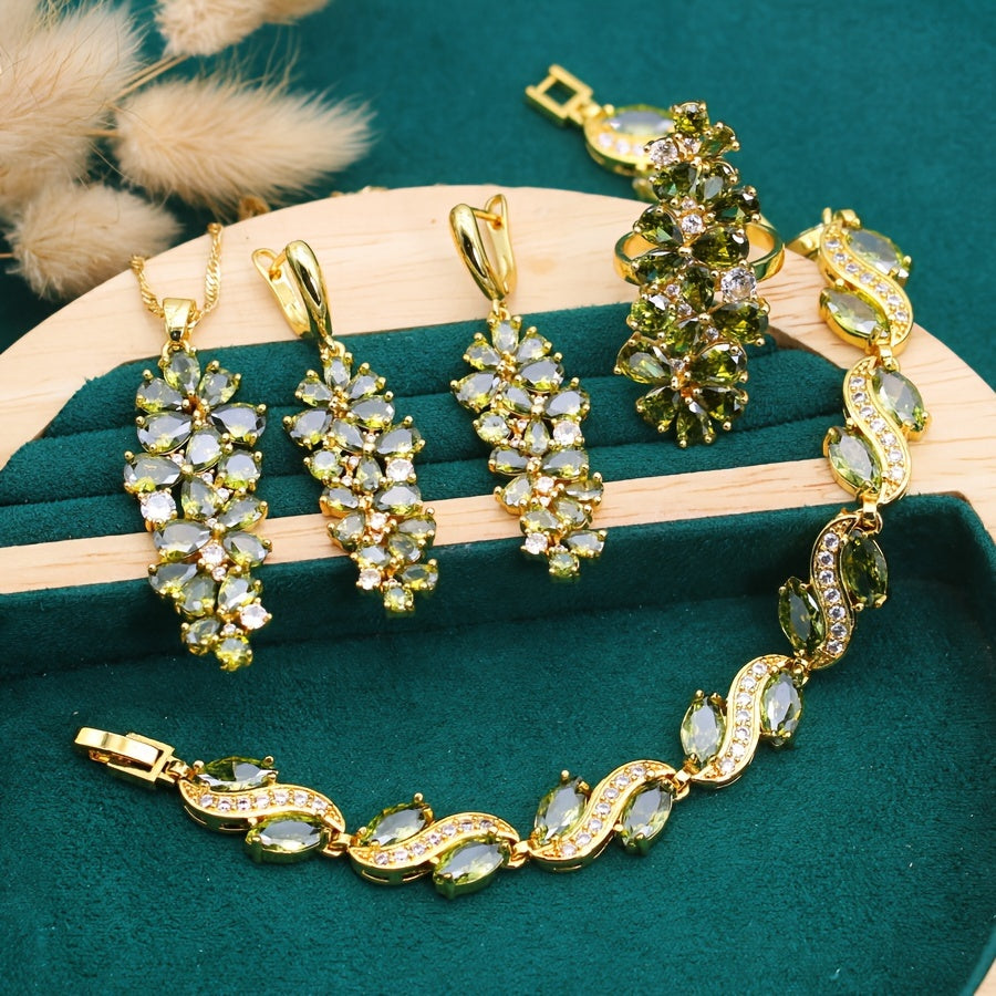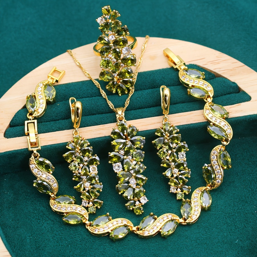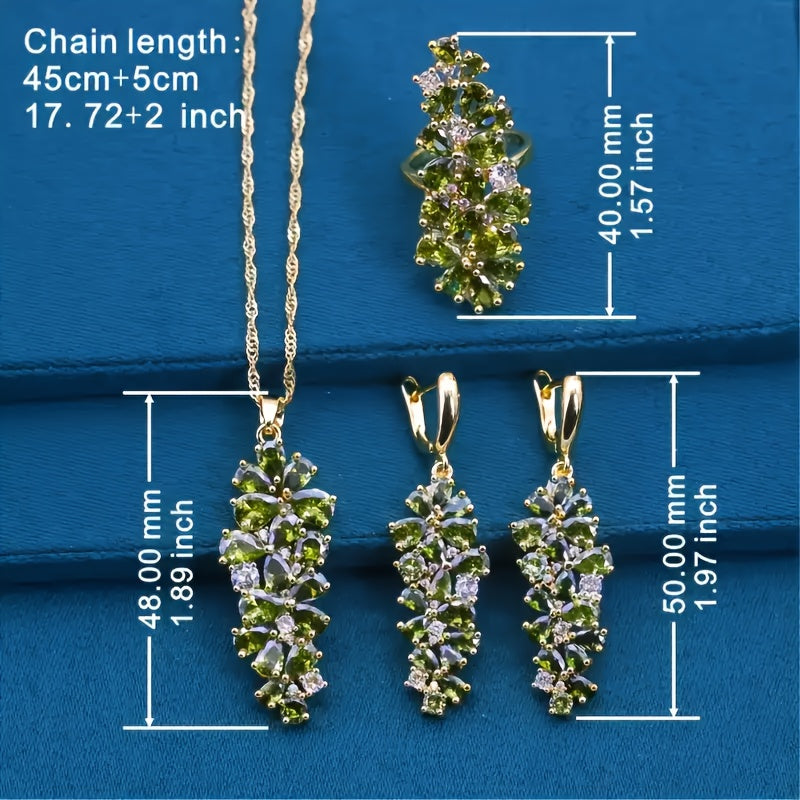 Grapevine Olive Green Synthetic Zirconia Jewelry Set
