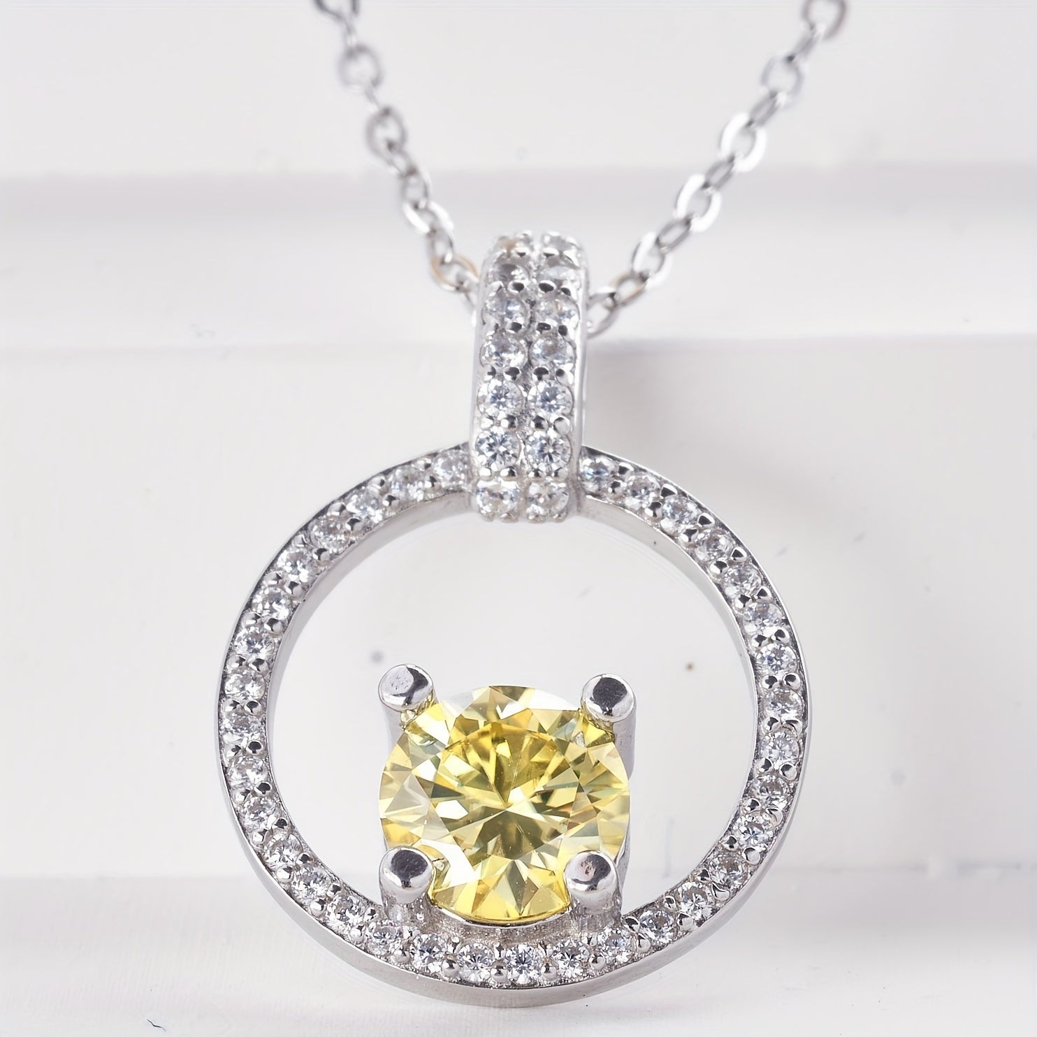 Round Yellow Moissanite Circle Pendant Necklace