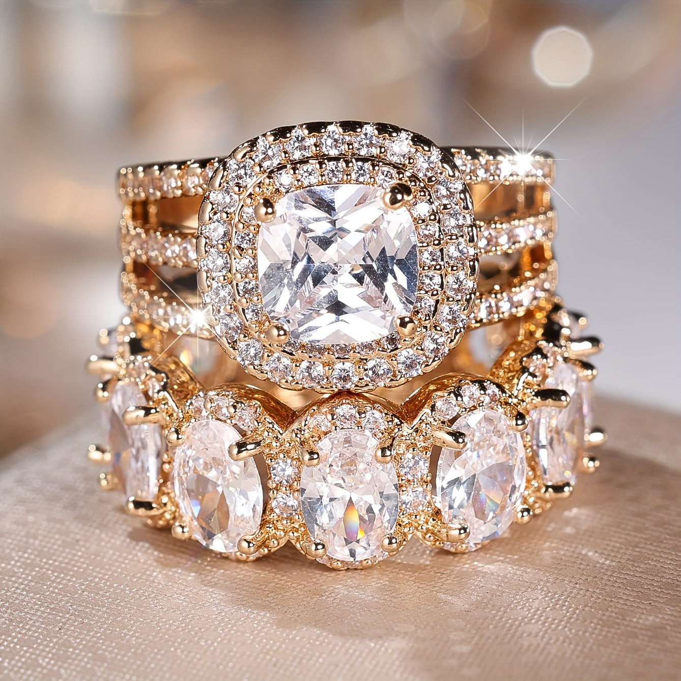 2-Piece Fashionable Synthetic Zirconia Ring