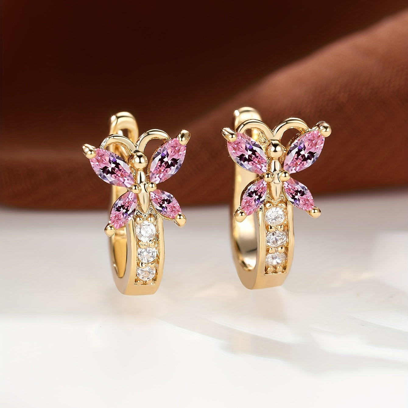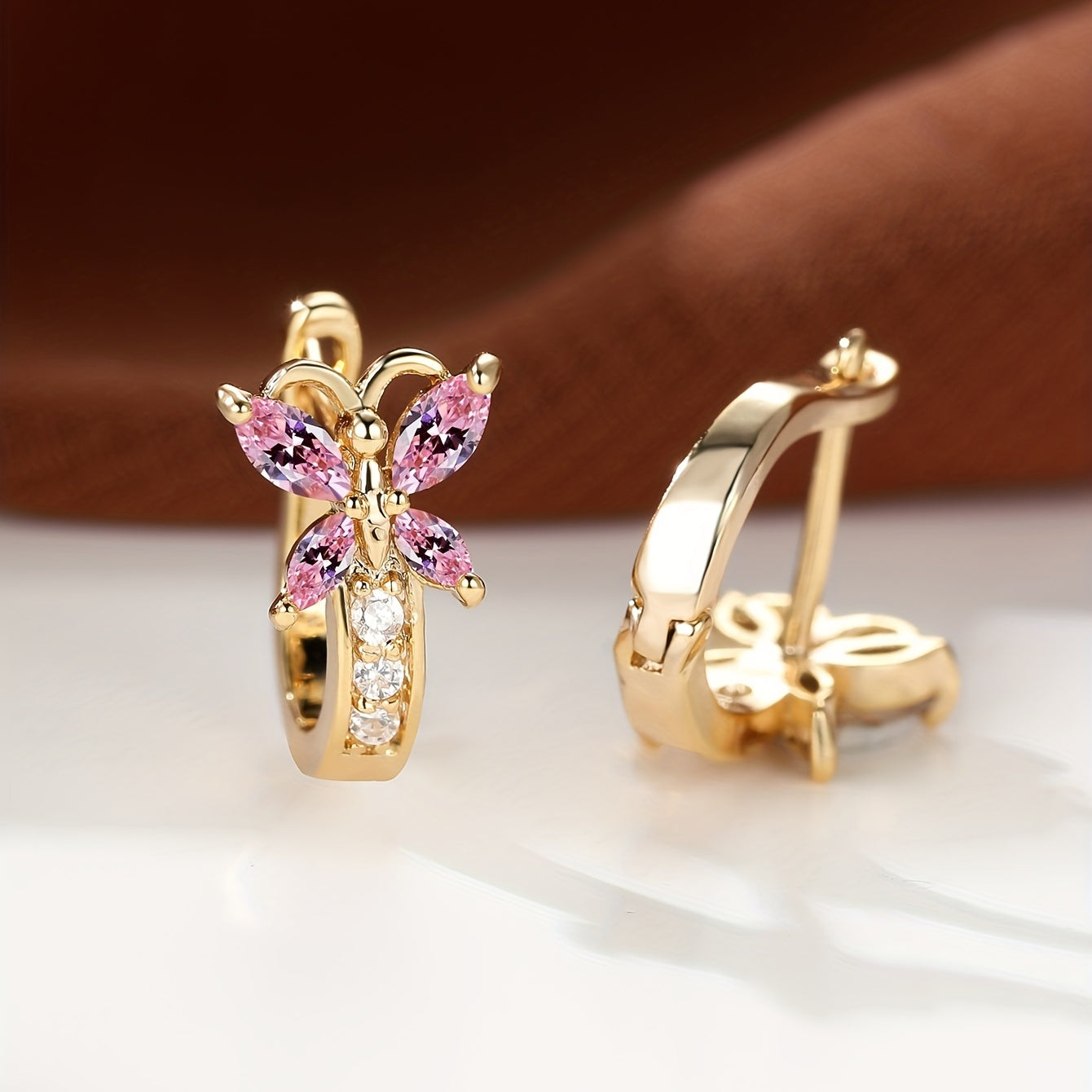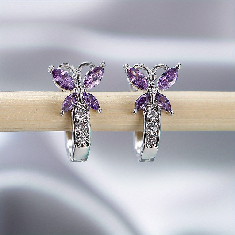 Colorful Butterfly Zirconia Hoop Earrings