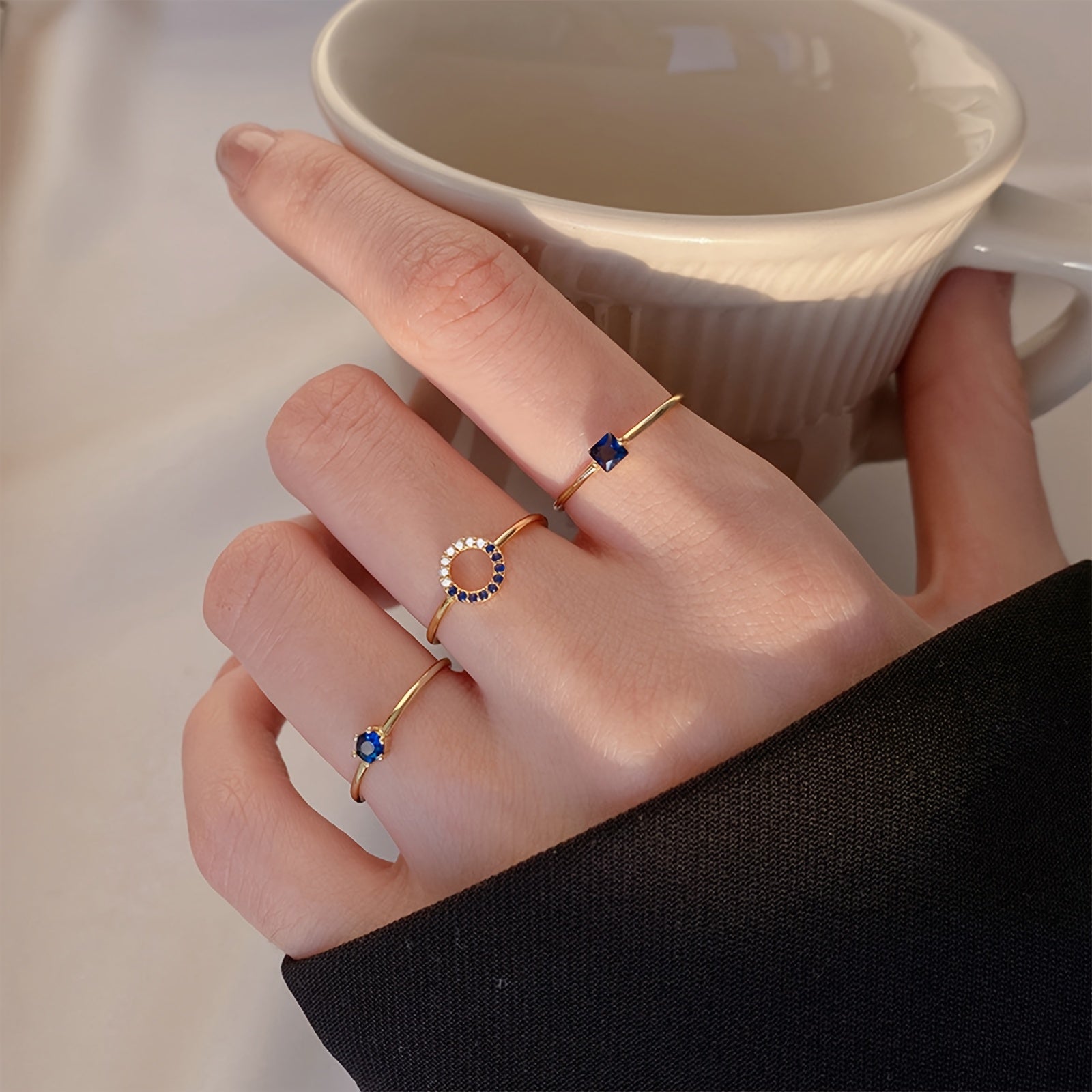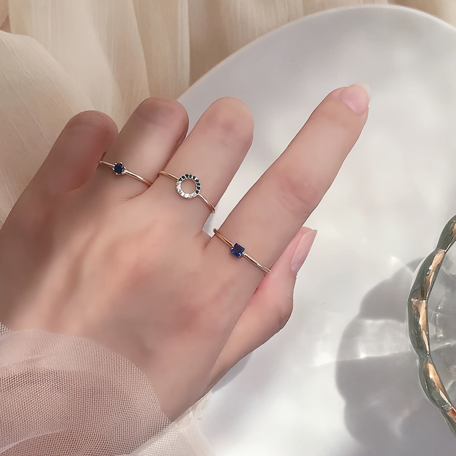 Dainty Blue Gemstone Open Ring Set
