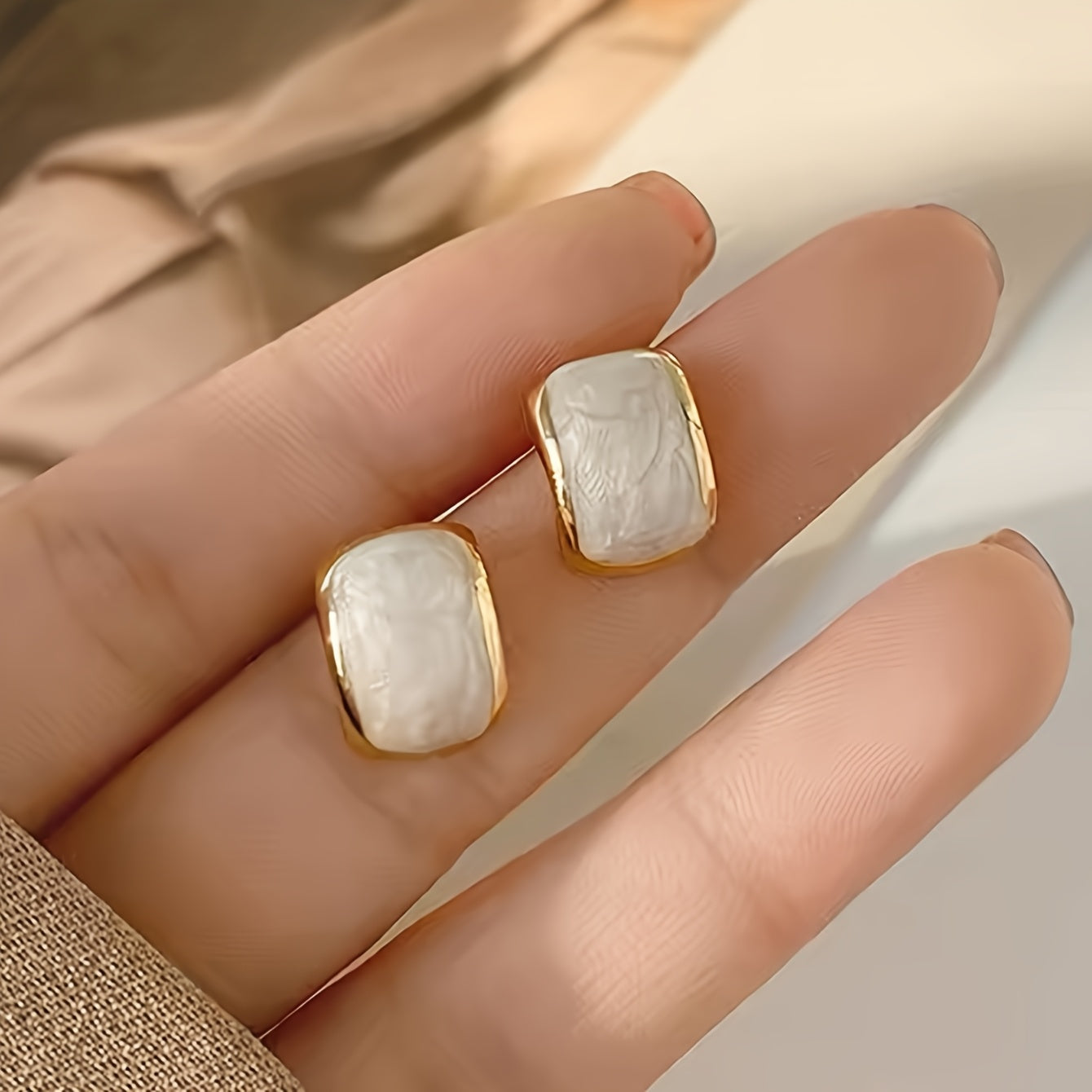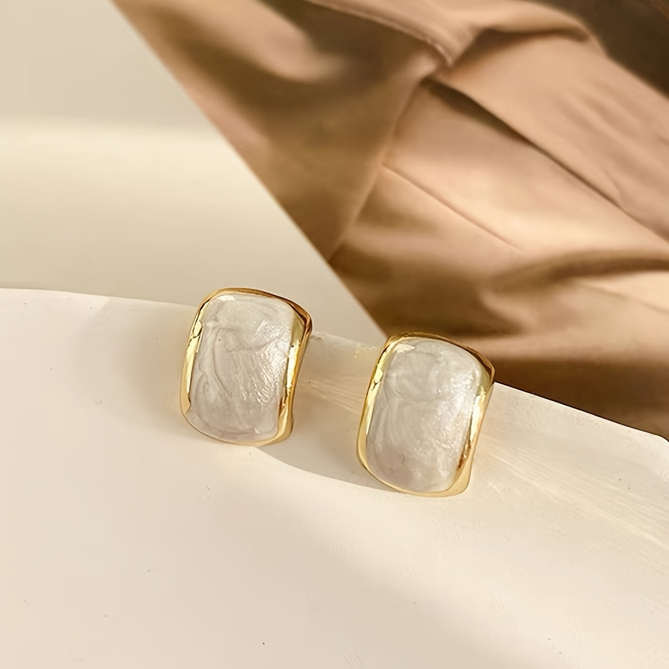 White Square French Style Earrings